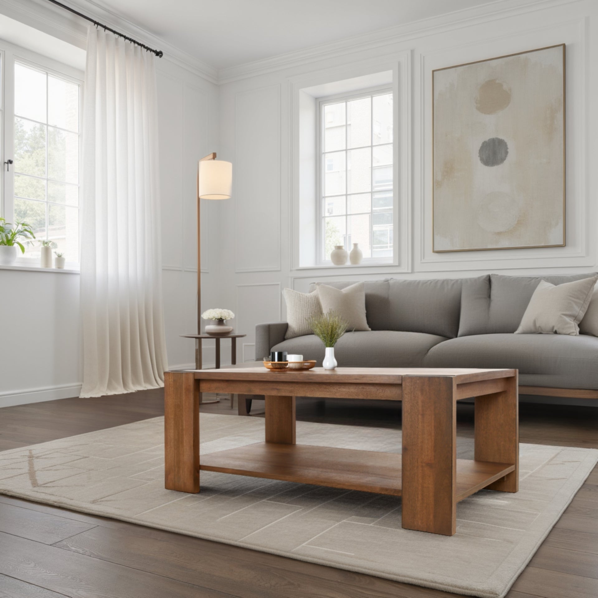 Built to last, the Morton Coffee Table combines the strength of solid and engineered wood with the refined beauty of mindi wood veneer, showcasing a rich, natural texture. Its solid wood legs provide exceptional stability and durability, ensuring it remains a centerpiece for years to come. Thoughtful details like rubber pads on each leg protect your floors from scratches and scuffs, making it as practical as it is stylish.