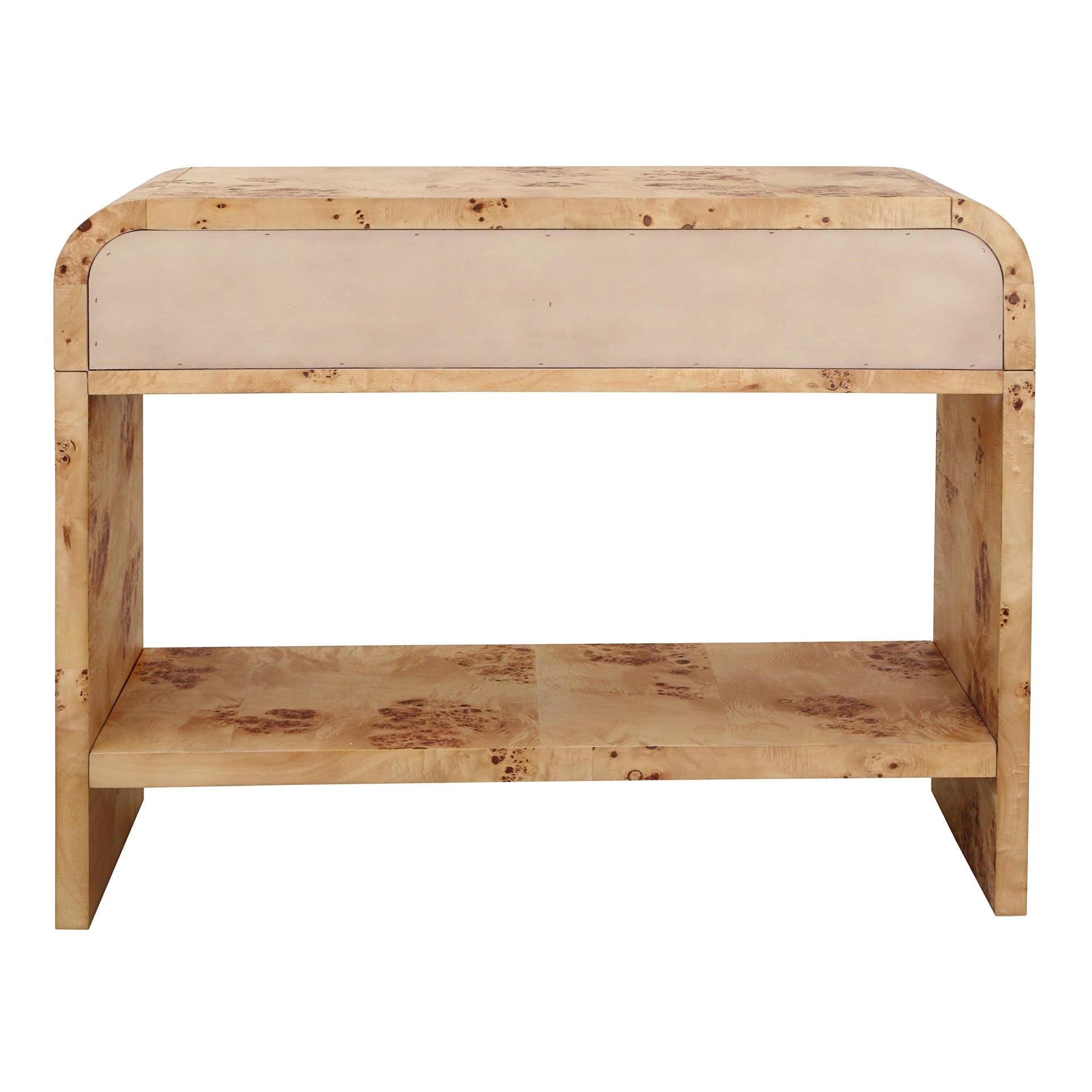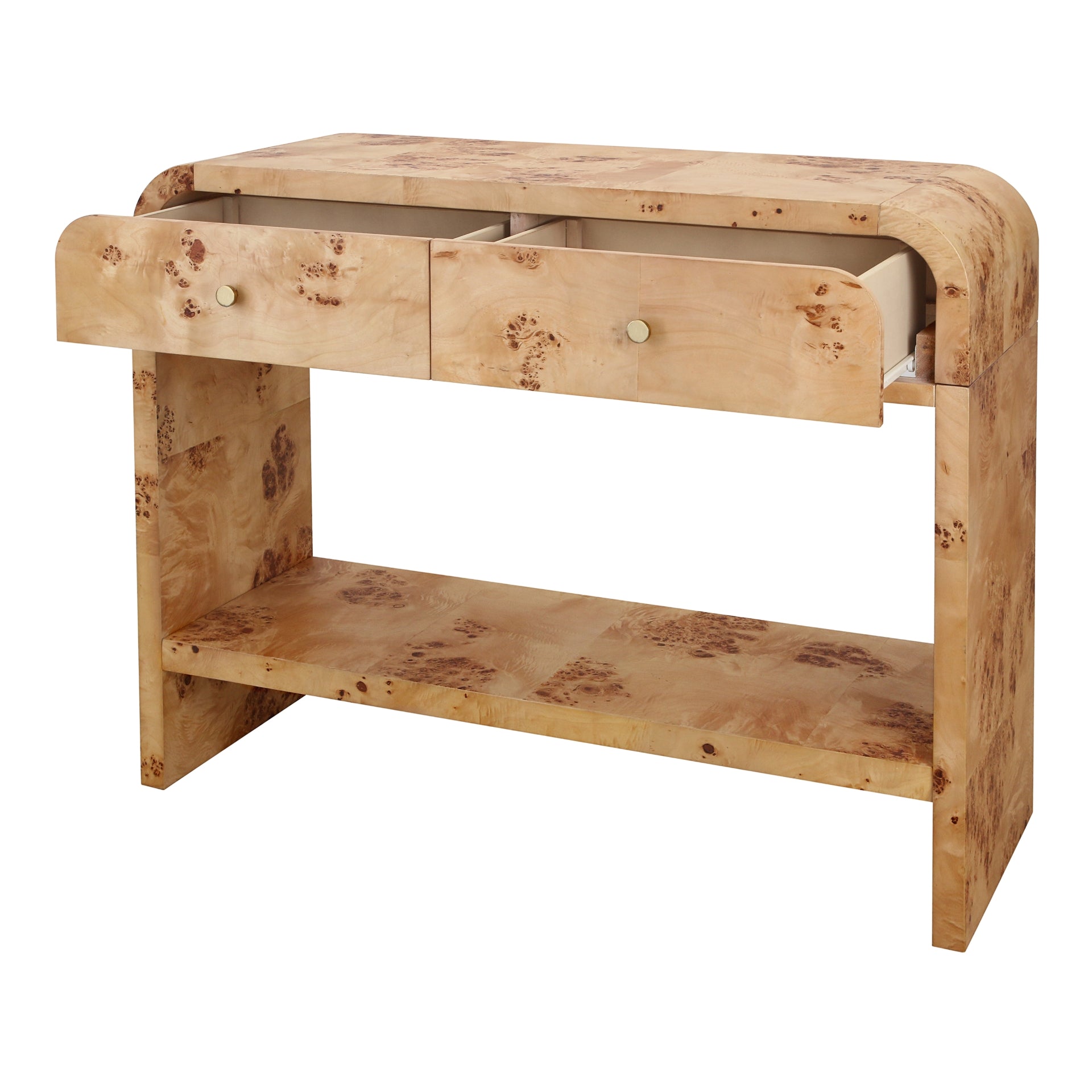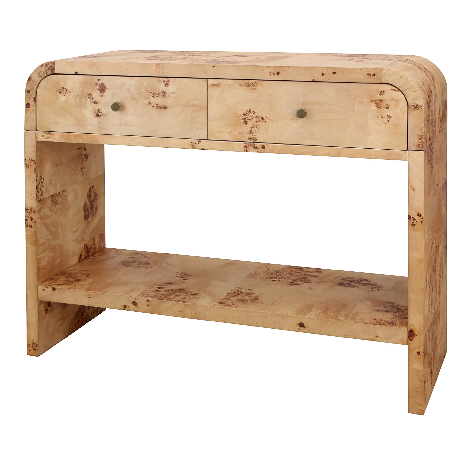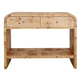 Veyra Burl Wood Console Table 2 Drawers w/ Shelf