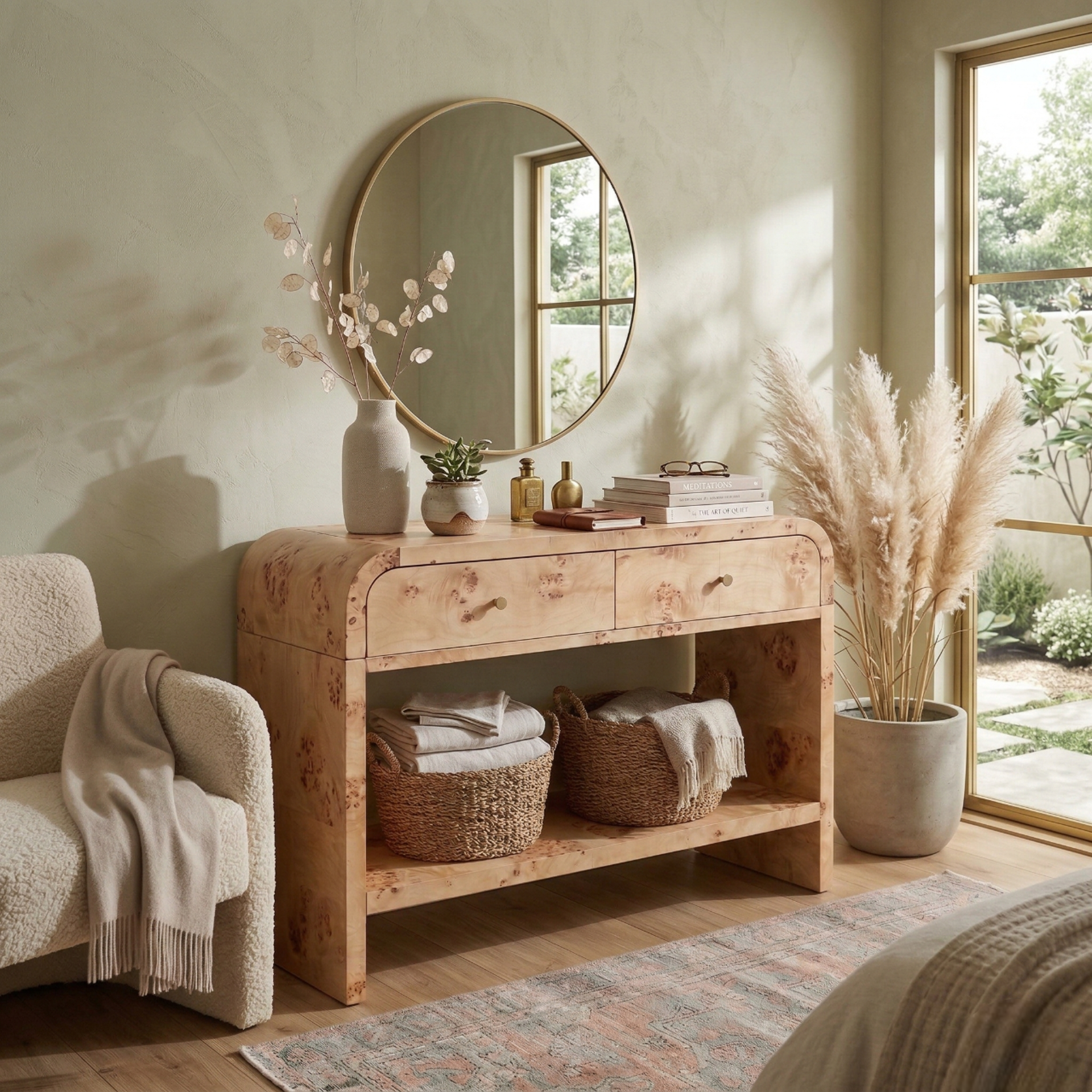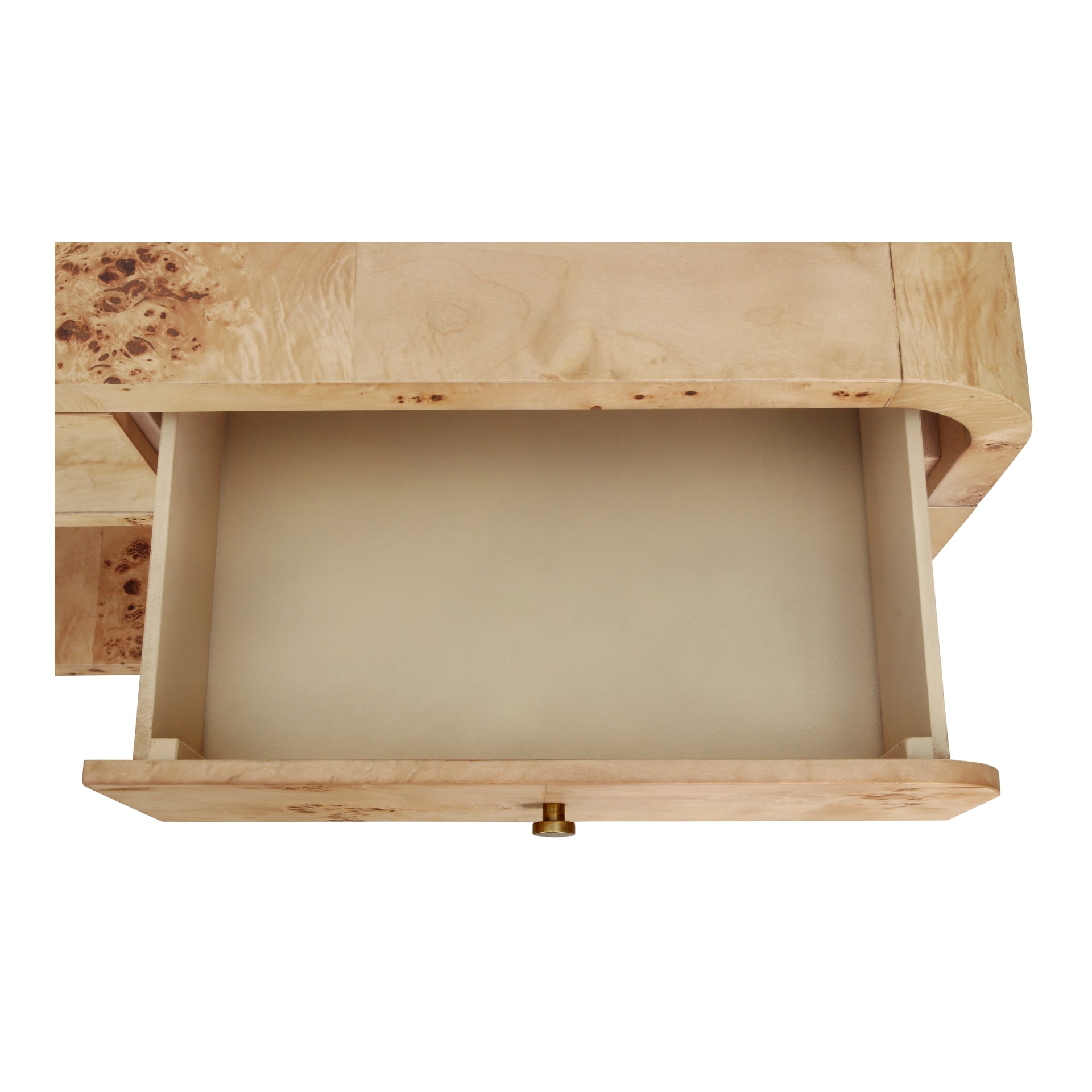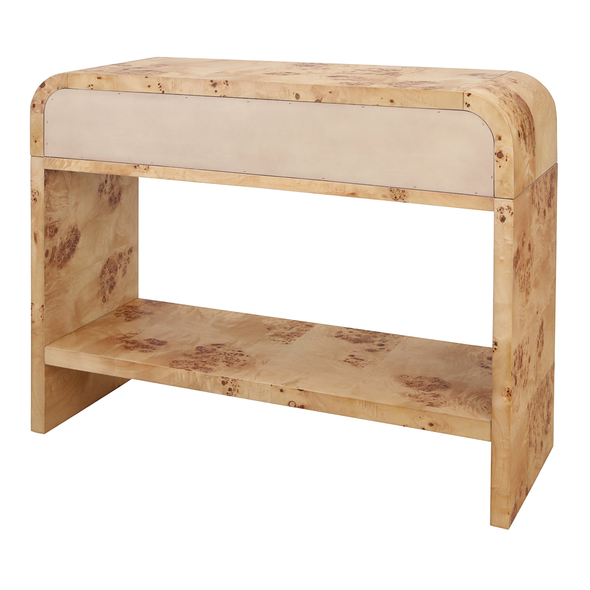 Veyra Burl Wood Console Table 2 Drawers w/ Shelf